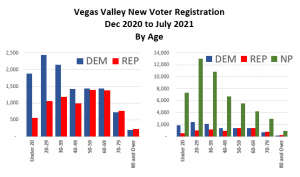Clark County Nevada New Voter Registrations Dec 2020 Through Jul 2021 37% of recently registered voters in Clark County Nevada were under 30 years old. 71% of those registered as Non Partisan.
