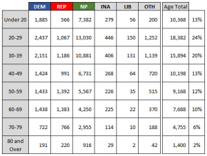 Democrat registrations outpaced Republican by more than two to one for those under 40. But Non Partisan voters in that age category represented three times as many new registrations as both Democrats and Republicans combined.