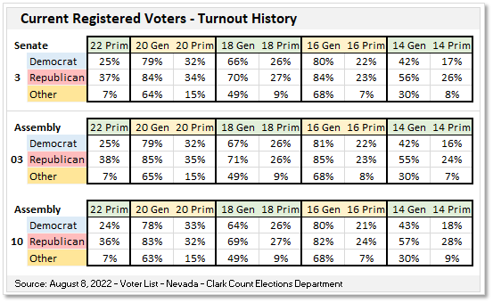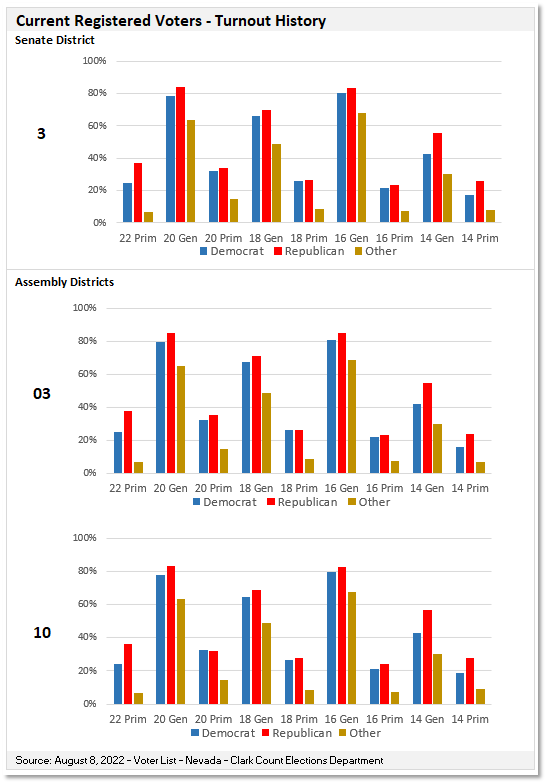 Nevada Senate 3 - Assembly 3 and 10 - Voter Registration and Turnout